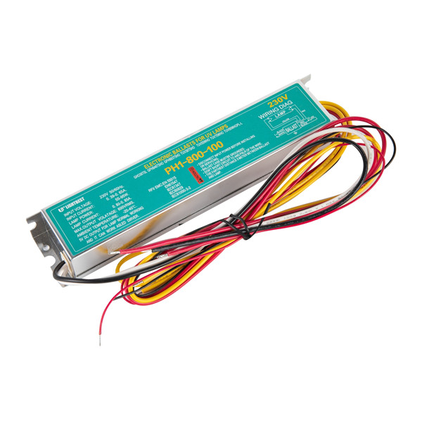 | PH1-800-100 | 0,83A à 230V | 105 | 215*44*26 | 0,75-0,85 | 35-95 | GPH436T5/HO, GPH843T5/HO, TUV36T5/HO, TUV55WT8/HO, TUV75WT8/HO |