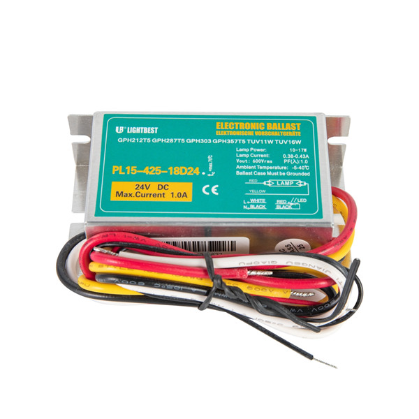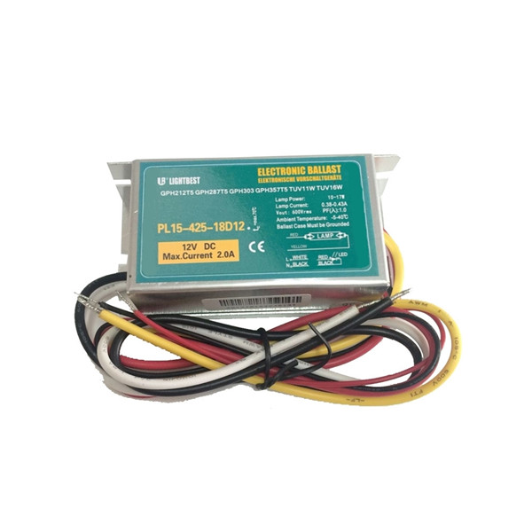 | PH12-425-18A | 0,31A à 120V | 12-21 | 80*40*22 | 0,36-0,42 | 10-17 | GPH212T5/10W, GPH287T5/14W, GPH357T5, G15T8 TUV11W, TUV16W, TUV15WT8, LTC11T5, LTC16T5 |