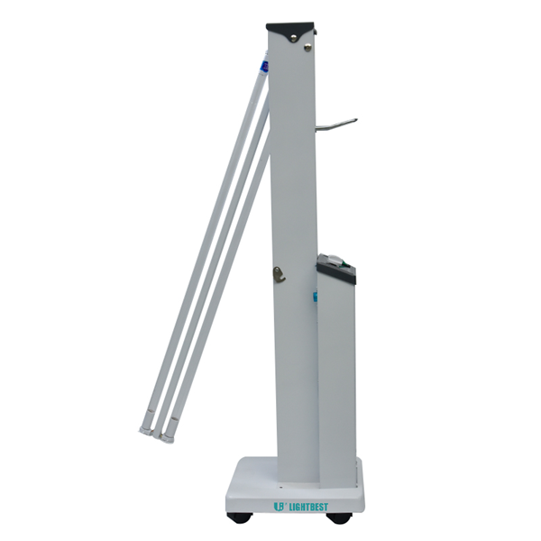 Les chariots de désinfection UV mobiles Lightbest sont installés avec deux lampes UVC droites de 2 x 30 W. Lorsque vous devez stériliser avec des rayons ultraviolets de 253,7 nm ou de l'ozone, vous pouvez allumer le stérilisateur et allumer les lampes UVC, et après la stérilisation, vous pouvez éteindre le stérilisateur. Le bras de la lampe peut être poussé dans le boîtier de la lampe pour économiser de l'espace et protéger la lampe. Le bras de la lampe peut être tourné de 0 à 180 ° pour une stérilisation plus efficace et conçu avec une minuterie que vous pouvez régler de 0 à 120 minutes. stérilisation, et il est largement utilisé pour stériliser les hôpitaux, les hôtels, les bureaux, les gymnases, les cinémas, les ateliers d'usine et les écoles, etc.